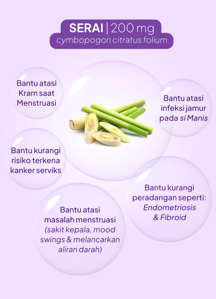Daun Sereh mengandung antibakteri alami yang bantu menjaga kebersihan area kewanitaan, mengurangi bau tak sedap, dan bikin lebih nyaman sepanjang hari!!